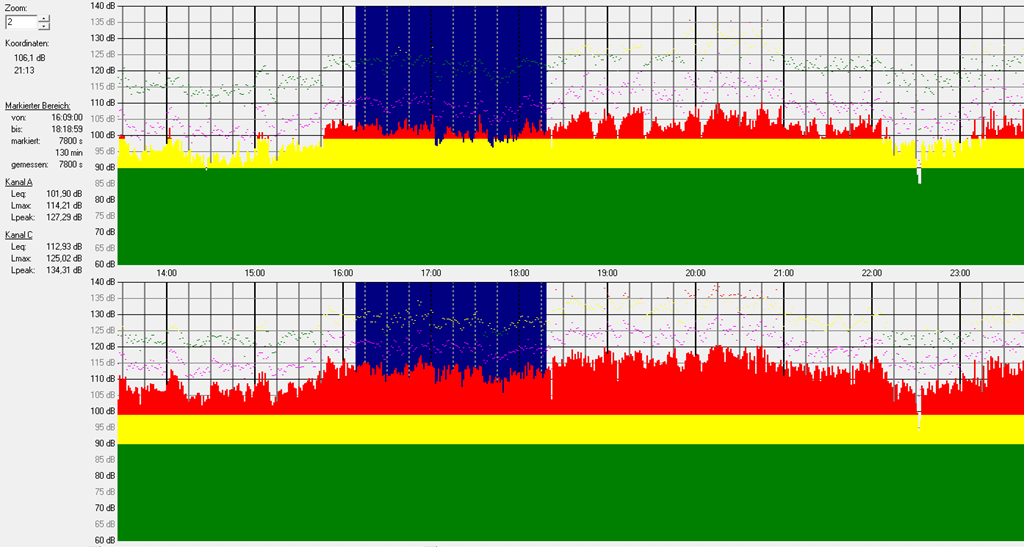 - Ausreichende Pegelfestigkeit: Für die Messung von LCpeak können Sie einen K2 von bis zu - 8 dB (Isemcon EMX 750) oder gar bis zu - 12 dB (M215L) verwenden, ohne dass die Messanlage ins Clippen kommt. Sie können also Ihr Messmkrofon in der Nähe des Lautsprecher anbringen und werden damit keine Probleme mit Publikumsgeräuschen haben.
